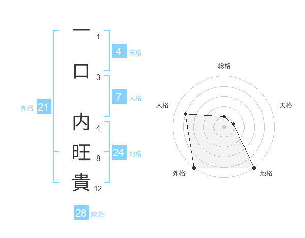 一口 内旺貴さんの外格は21画の5点!