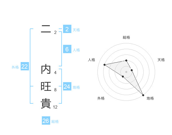 二 内旺貴さんの総格は26画の2点!