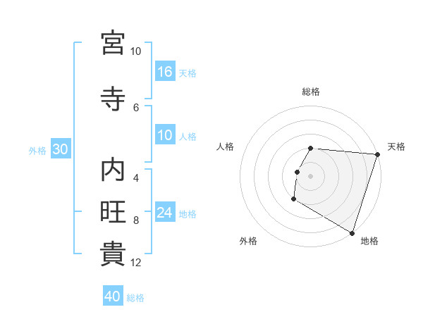 宮寺 内旺貴さんを姓名の画数から五運を鑑定