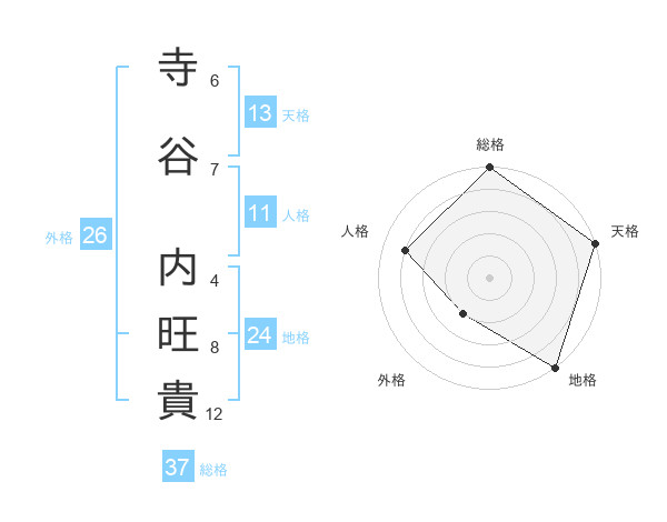 寺谷 内旺貴さんを姓名の画数から五運を鑑定