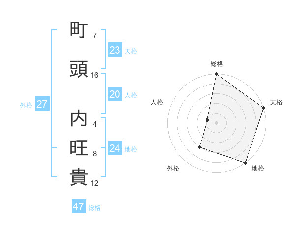 町頭 内旺貴さんを姓名の画数から五運を鑑定