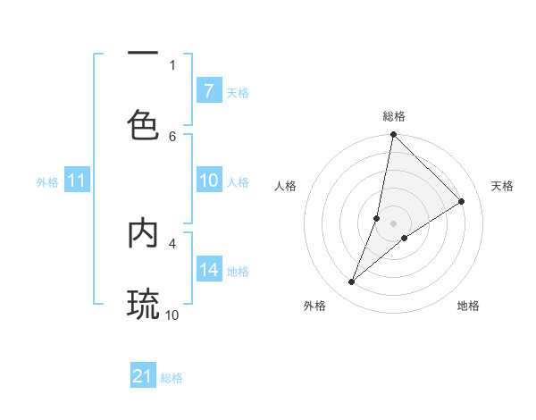 一色 内琉さんの総格は21画の5点!