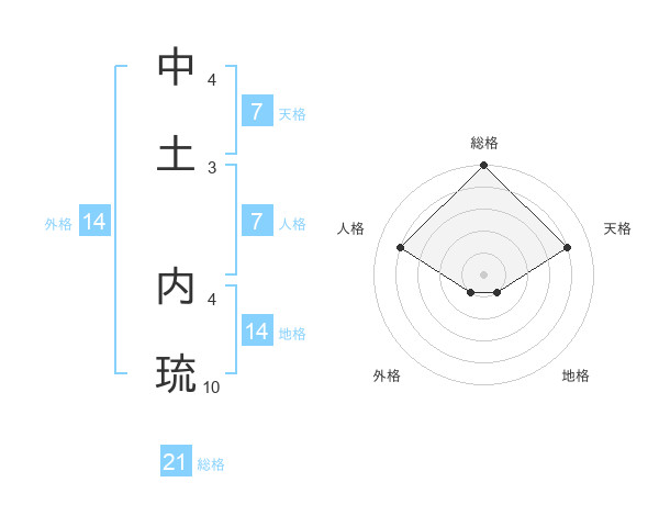 中土 内琉さんの総格は21画の5点!