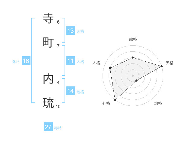 寺町 内琉さんを姓名の画数から五運を鑑定