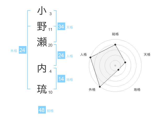 小野瀬 内琉さんを姓名の画数から五運を鑑定