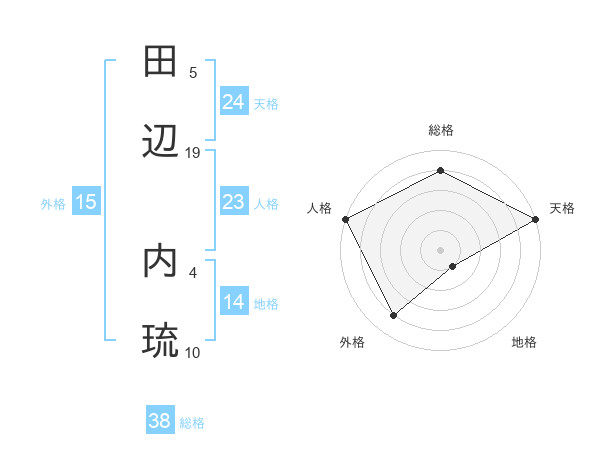 田辺 内琉さんの天格は24画の5点!