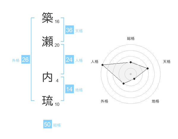 築瀬 内琉さんの総格は50画の2点!