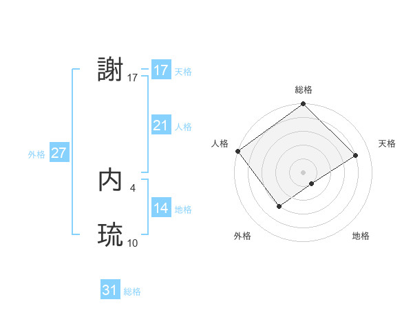 謝 内琉さんの総格は31画の5点!