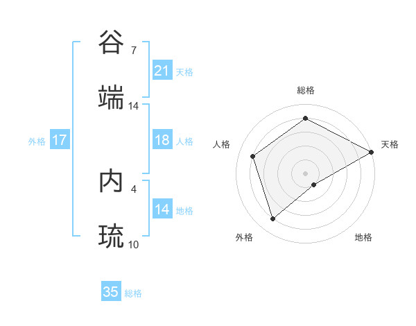 谷端 内琉さんを姓名の画数から五運を鑑定