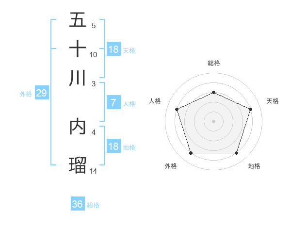 五十川 内瑠さんを姓名の画数から五運を鑑定