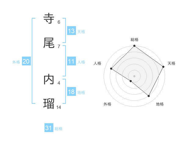 寺尾 内瑠さんの総格は31画の5点!