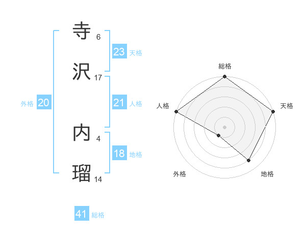 寺沢 内瑠さんを姓名の画数から五運を鑑定