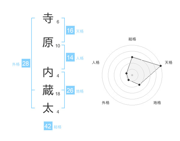 寺原 内蔵太さんを姓名の画数から五運を鑑定
