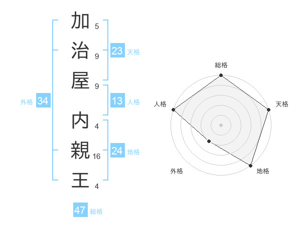 加治屋 内親王さんを姓名の画数から五運を鑑定