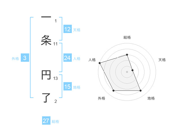 一条 円了さんの総格は27画の3点!
