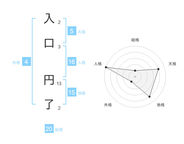 入口 円了さんの人格は16画の5点!