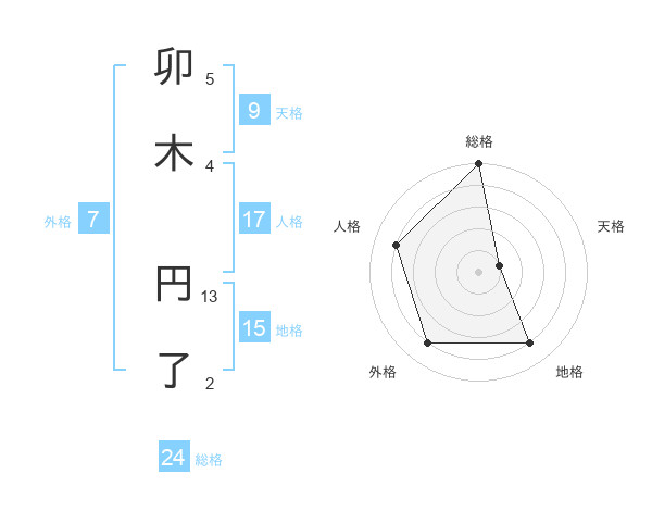 卯木 円了さんの総格は24画の5点!