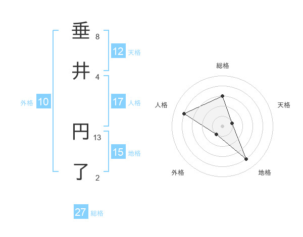 垂井 円了さんの総格は27画の3点!