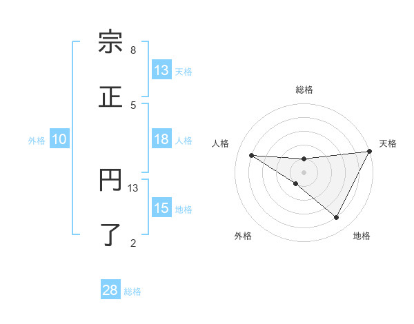 家系が持つ宿命的な運勢を表します。祖先から受け継いだ苗字ですので自分の力が及びません。家柄を象徴します。