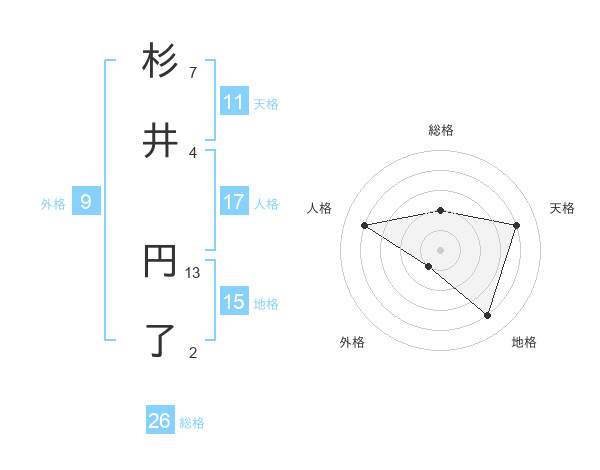 杉井 円了さんの総格は26画の2点!