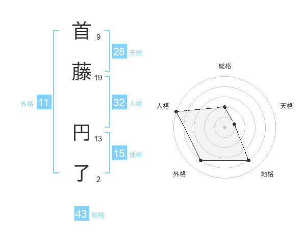 首藤 円了さんの総格は43画の2点!