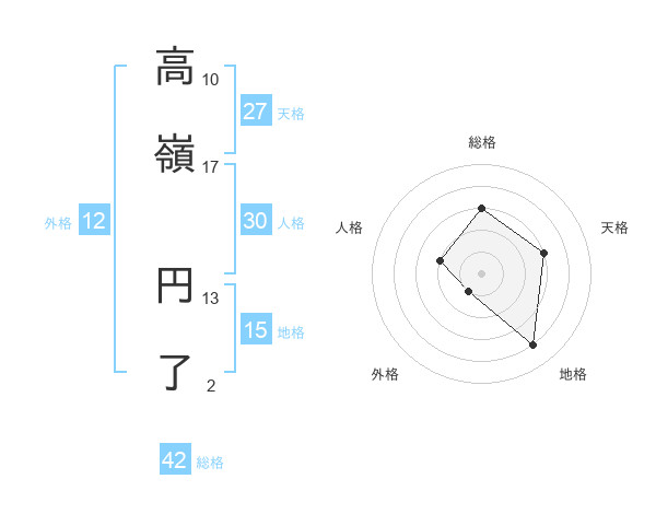 高嶺 円了さんを姓名の画数から五運を鑑定