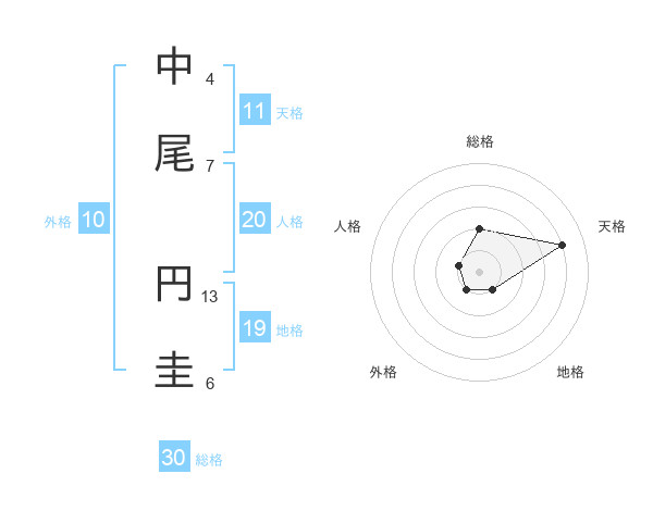 中尾 円圭さんの総格は30画の2点!