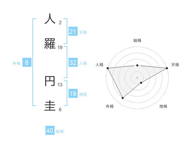 人羅 円圭さんを姓名の画数から五運を鑑定