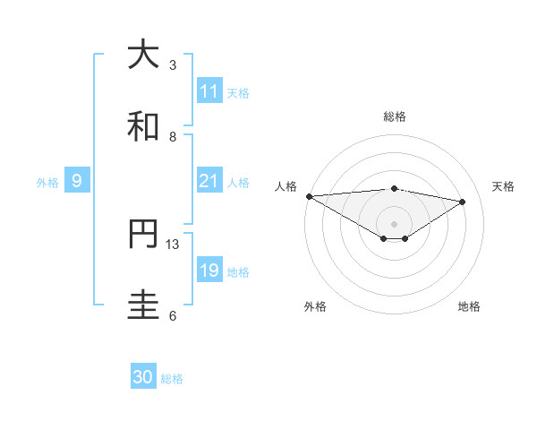 大和 円圭さんの総格は30画の2点!
