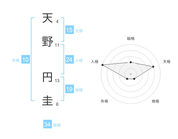 天野 円圭さんの天格は15画の4点!
