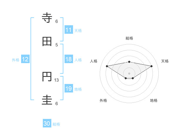 寺田 円圭さんを姓名の画数から五運を鑑定