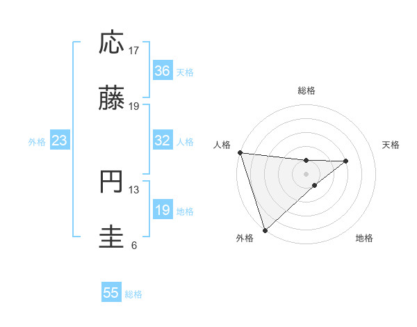 応藤 円圭さんを姓名の画数から五運を鑑定