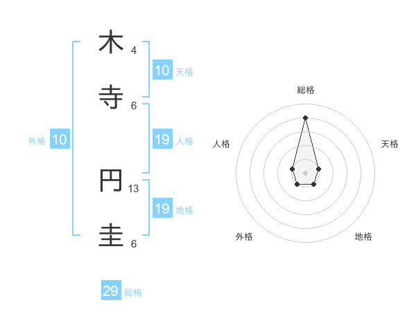 木寺 円圭さんを姓名の画数から五運を鑑定