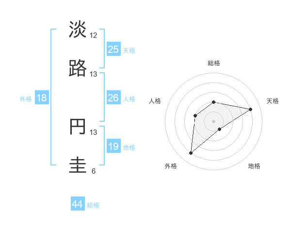 淡路 円圭さんを姓名の画数から五運を鑑定