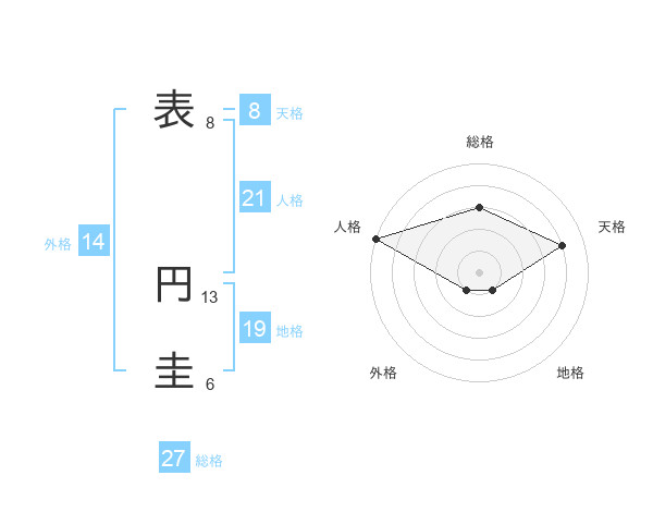 表 円圭さんの人格は21画の5点!