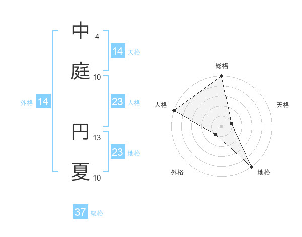 中庭 円夏さんの総格は37画の5点!