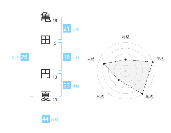 亀田 円夏さんの天格は21画の5点!