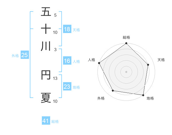 五十川 円夏さんを姓名の画数から五運を鑑定