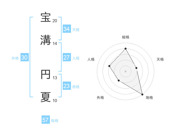 宝溝 円夏さんの総格は57画の4点!