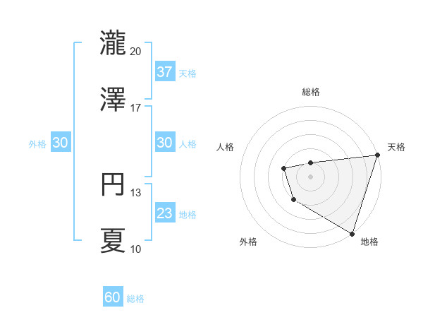 瀧澤 円夏さんを姓名の画数から五運を鑑定