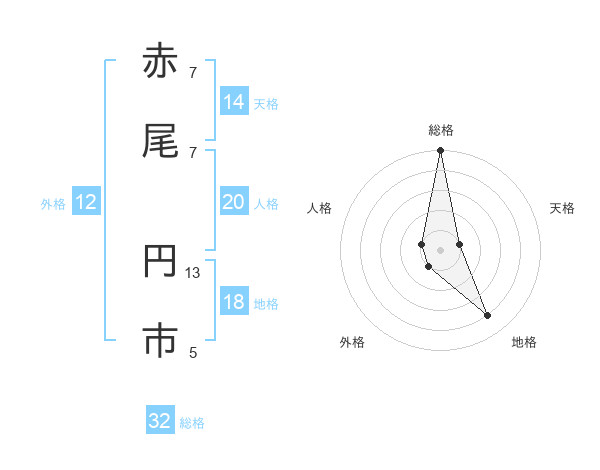 赤尾 円市さんを姓名の画数から五運を鑑定
