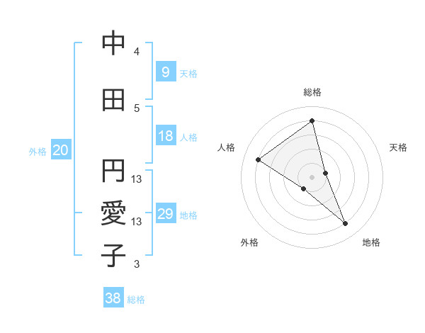 中田 円愛子さんの総格は38画の4点