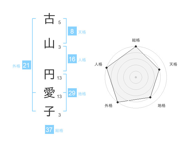 古山 円愛子さんを姓名の画数から五運を鑑定