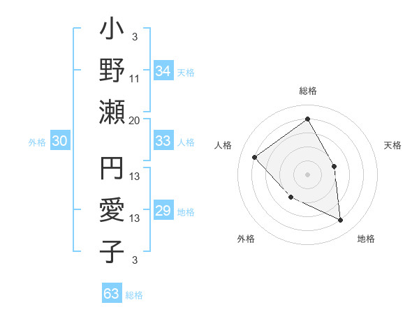 小野瀬 円愛子さんを姓名の画数から五運を鑑定