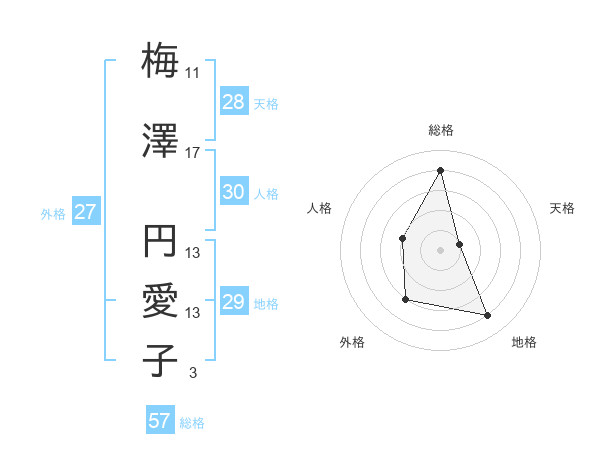 梅澤 円愛子さんを姓名の画数から五運を鑑定