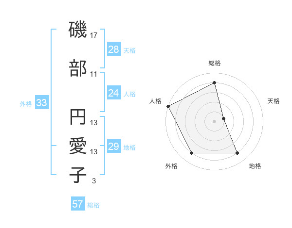 磯部 円愛子さんを姓名の画数から五運を鑑定