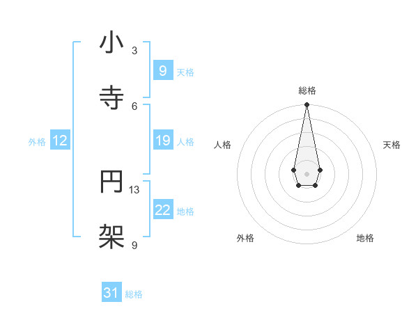 小寺 円架さんの総格は31画の5点!