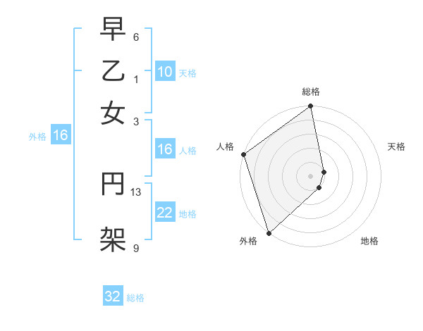 早乙女 円架さんを姓名の画数から五運を鑑定