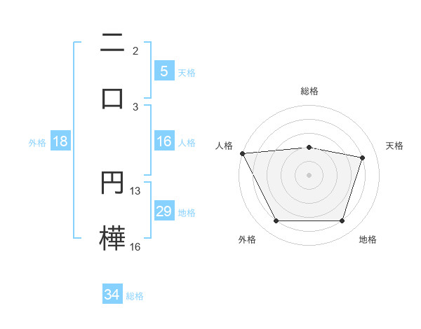 二口 円樺さんの地格は29画の4点!