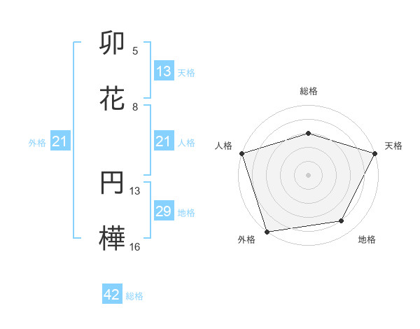 卯花 円樺さんを姓名の画数から五運を鑑定